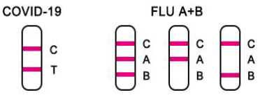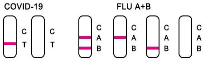 COVID-19 esetében: Ha mind a kontrollvonal (C), mind a tesztvonal (T) megjelenik, az azt jelzi, hogy SARS-CoV-2 antigén kimutatható, és az eredmény pozitív.